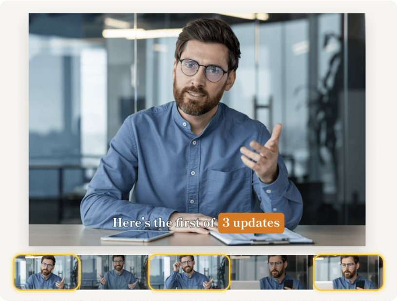Reinforce key messages from your video with short clips—tell Underlord how many clips you want and on what topic. It picks them and sets them up for you to finish. Add captions or any creative flair you want, and share them as bite-sized reminders, or to generate interest in the full thing.